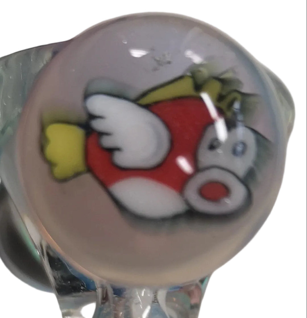 KOBB Glass - 14mm Worked Opal Up Horn Bowl w/ Flying Fish Millie (1 Hole) - Opal Skyline